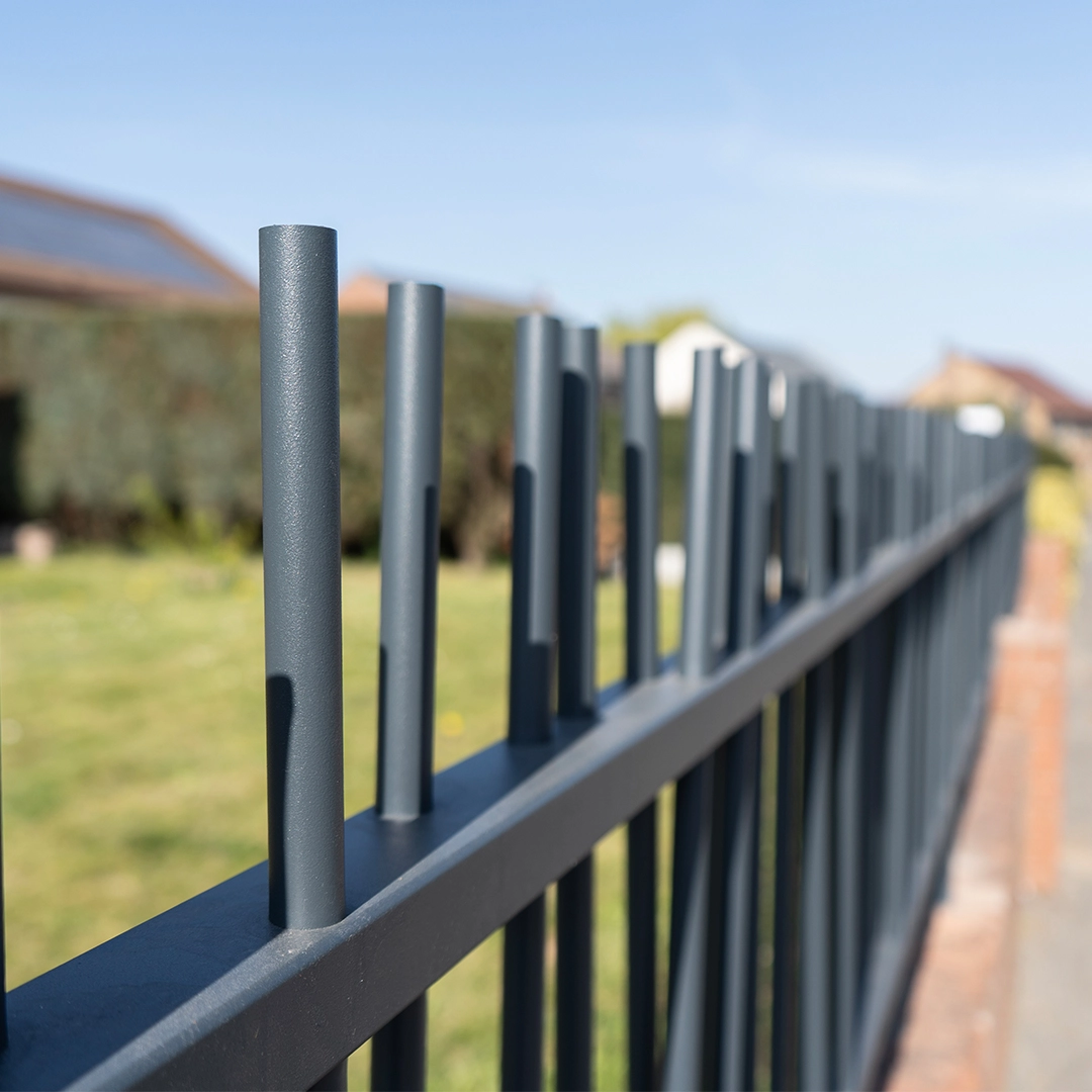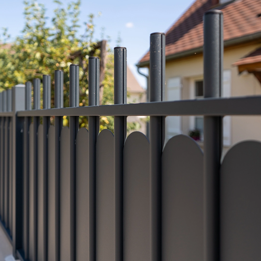 Chez Clôtures & Portails d’Hazebrouck, nous installons des clôtures barreaudées en aluminium et en acier thermolaqué, issues de notre catalogue, avec une pose garantie 10 ans réalisée par nos propres équipes.