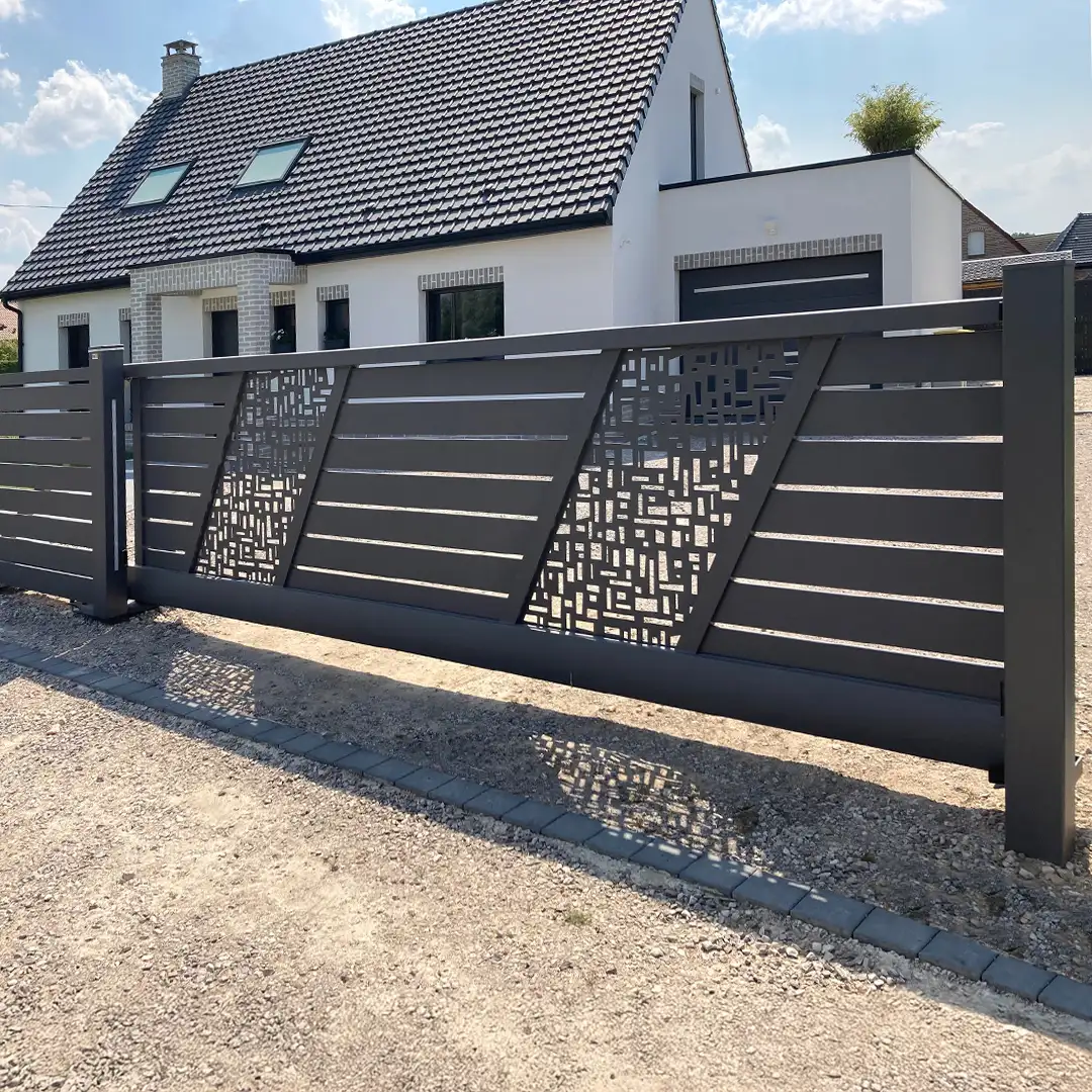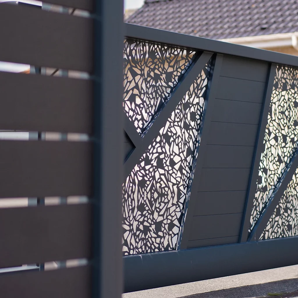 Chez Clôtures et Portails d’Hazebrouck, nous installons des portails stylisés en aluminium thermolaqué, aux lignes modernes, originales et personnalisables, tout en garantissant robustesse et sécurité.